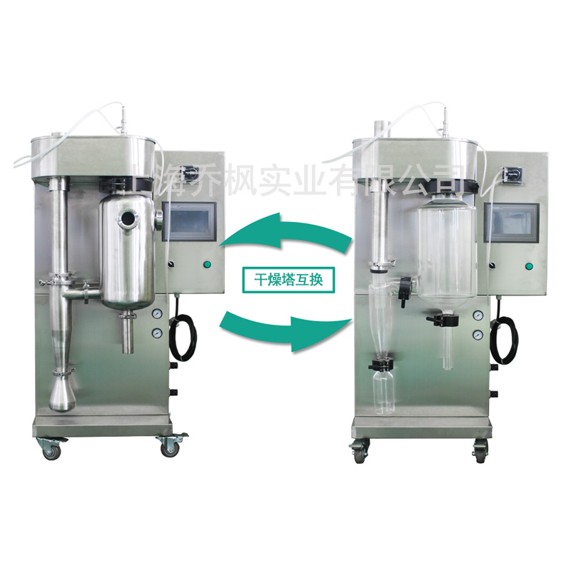 小型 實驗型 微型噴霧干燥機(噴霧干燥儀/噴霧干燥機)及其主要適用于高校、研究所和食品醫藥化工企業實驗室生產微量顆粒粉末,對所有溶液如乳濁液、懸浮液具有廣譜適用性, 適用于對熱敏感性物的干燥如生物制品、生物農藥、酶制劑等,因所噴出的物料只是在噴成霧狀大小顆粒時才受到高溫,故只是瞬間受熱,能保持這些活性材料在干燥后仍維持其活性成份不受破壞。