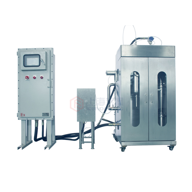 包含:配料罐、溶劑罐、輸料蠕動泵、輸料管路、霧化器,首先將配置好的漿料投入配料罐,攪拌均勻后在蠕動泵的驅動下,漿料通過管路閥門到達霧化器,霧化器需要配備上海喬楓特制的防爆霧化器噴頭,噴頭壽命保修使用一年。