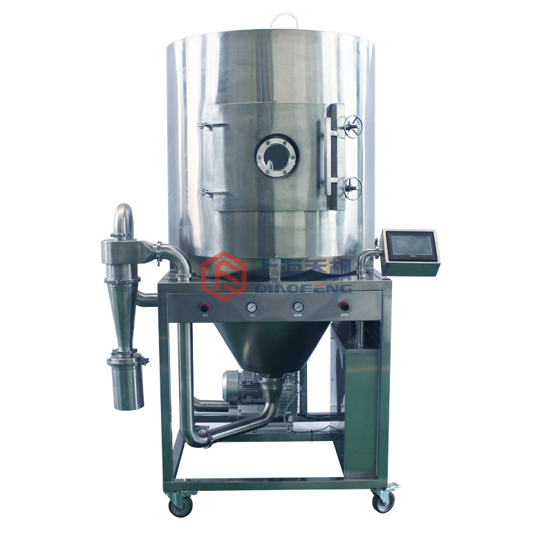 造粒噴霧干燥機是上海喬楓自主研發的一套造粒噴霧干燥機的。QFN-ZL系列造粒噴霧干燥機(喬楓獨家)專門的雙氣送液造粒噴頭,國內一大創新,直接將均勻的球形霧滴通過均勻的熱量變成顆粒。